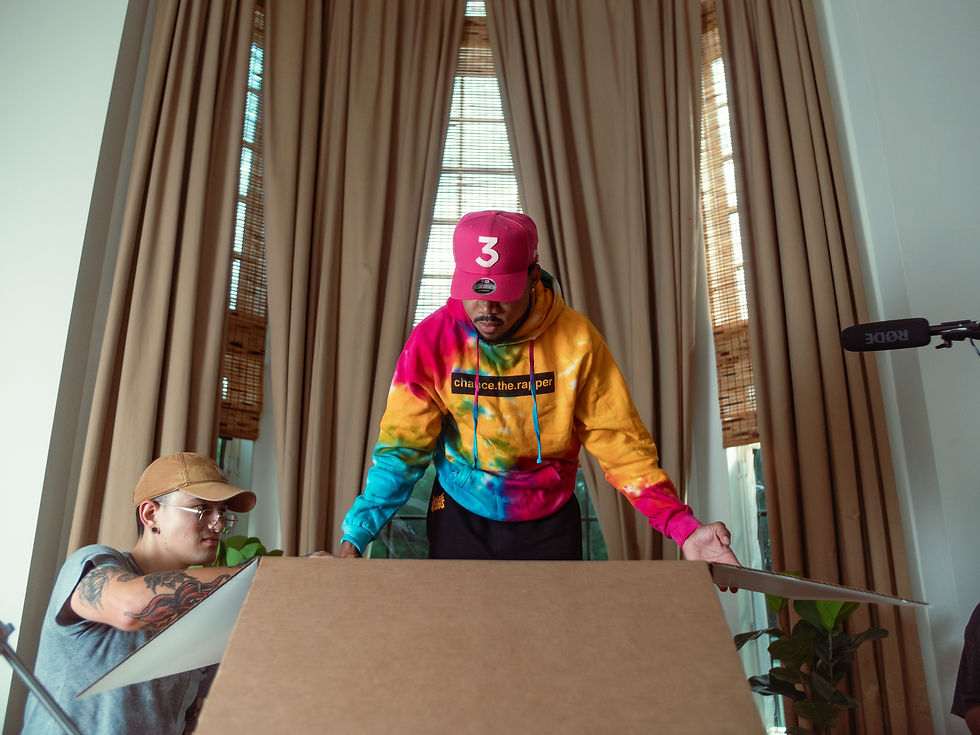Figure out the best way to have a can physically float up from a smaller scaled box into Chance The Rapper's hand.