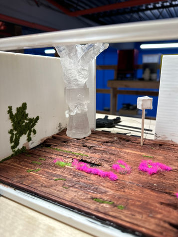 This project was created in order to allow for potential investors for Zoldyc to be able to envison how thier show's opperate. Their works are fine art based, and are intended for gallery instialltion. The front of the minature showcases a traditional gallery space housing a photograph of the minature, overgrown living room space in the room around the corner.